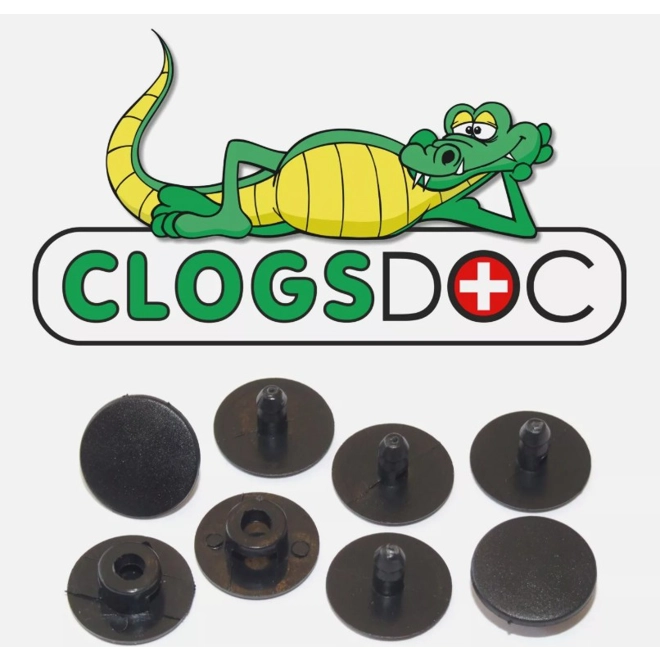 We have a quick and easy repair solution, two replacement parts that ‘snap’ together, to have you back in your Crocs in no time. No skill is required or any tools, just place the two rivet parts in their respective holes and push together until they click. All done in less than 10 seconds.